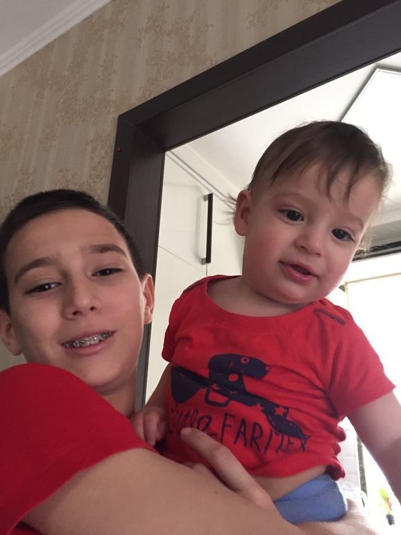 Арсюшенька наш мужчина вес 8900 рост 74см, вылезло еще 2зуба, теперь у него их целых 6. Бегает во всю на своих двоих в ходунки его теперь не поставишь. научился зализать на диван, теперь учим его слазить, получается через раз поэтому глаза у меня уже дергаются.... мальчишки научили Арсения давать пять, делает это как заправский мужик. Силач наш катает Настю на лошади, и тягает стулья по всему дому как будто они не весомые, от куда столько дури у маленького ребенка. Перешли на купание только в большой ванной в маленькой нам место мало выпадаем мы оттуда потому как шило в попе не дает сидеть на месте. На все ящики повесили замки покупала на Али брала два вида одни научились расстегивать в первые десять минут, вторые еще стоят на месте так что уборки сейчас поменьше, всю бьющуюся посуду спрятала о греха подальше чтоб потом ни кого не винить, часть кухни переехала в коридор, а у детей появилось еще два огромных шкафа с игрушкам. И самая главная радость этого месяца для мамы т.е. для меня приехала наконец то наша коляска Valco baby lon for 2 и мы теперь гулям Ура