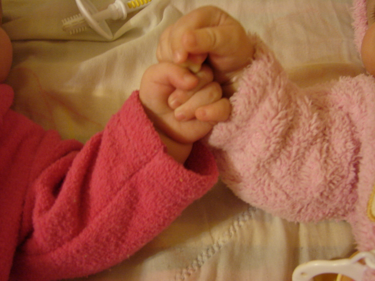 Малышки родились в 36,5 недель, ПКС , из-за резус- конфликта: Ксения-2960/50 и Виктория-2560/50.