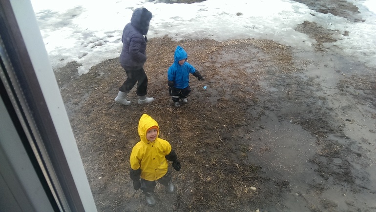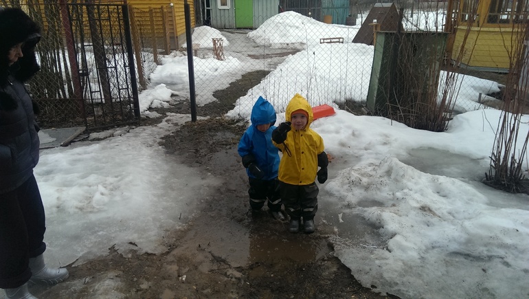 Гулять собираемся конечно вымотав маме все нервы. Гулять в принципе любят, не то чтобы прям с визгами радости бегут, но любят. А если сказать им пойдем по лужам походим, то это конечно их подкупает)) Есть только одна проблема - пока их заставишь одеться мама теряет голос.