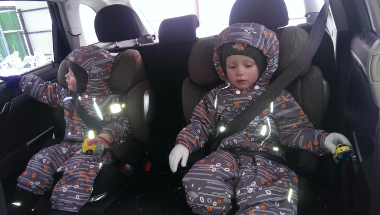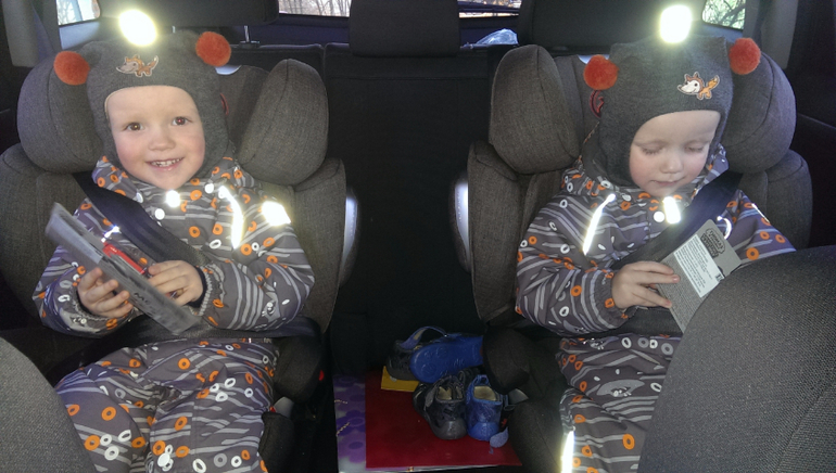 Еще одно из значимых наверное даже больше для мамы событий мы пересели в новые автокресла с февраля примерно (нам было 2г7м). Почему для мамы событие да потому что ездим мы много, с сад тоже на машине поскольку он все таки не так близко (30 мин.) и я замучилась поднимать их по 15 кг каждый и пытаясь не угваздать все вокруг втиснуть из в maxi-cosi tobi. Кресла безусловно шикарные, но...поскольку они все таки рассчитаны на определенный возраст, в них шикарно было детям спать, а забраться самим к примеру в кресла было довольно сложно, осложнялось еще тем что машина паркетник и достаточно высоко получаются установлены кресла для них... В общем мучалась я мучалась, рано нам или нет, но в итоге решилась и не пожалела. Дети забираются в них сами без проблем, им стало удобно самим дотянутся до всего и это безусловно облегчало мне жизнь. К слову взяли мы в этот раз Cybex (как я их раздобыла со скидкой это отдельный трактат)))))