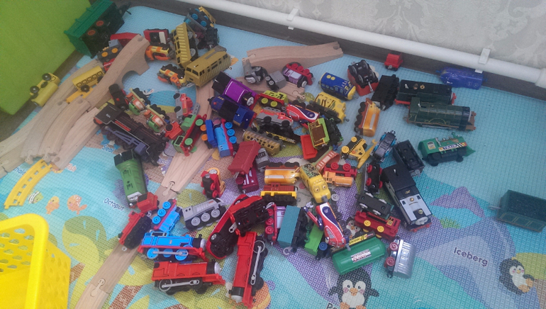Что касается игрушек... просто бредим паровозиками, в приоритете Tомасы,маму уже от них тошнит и от цен на них стоит заметить тоже. Даже сказки на ночь требуют рассказать исключительно про Томаса и его друзей.