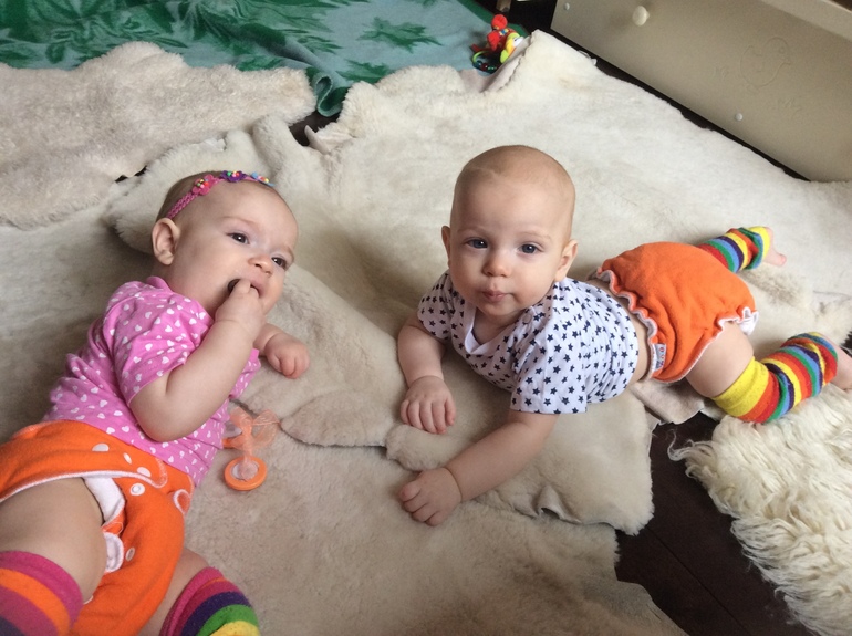 Двойняшки до 1 годаУчаствовали мы фотоконкурсе в сообществе "Многоразовые подгузники". Не выиграли, но зато пофоткала мама деток в класнецких трусах. )))))