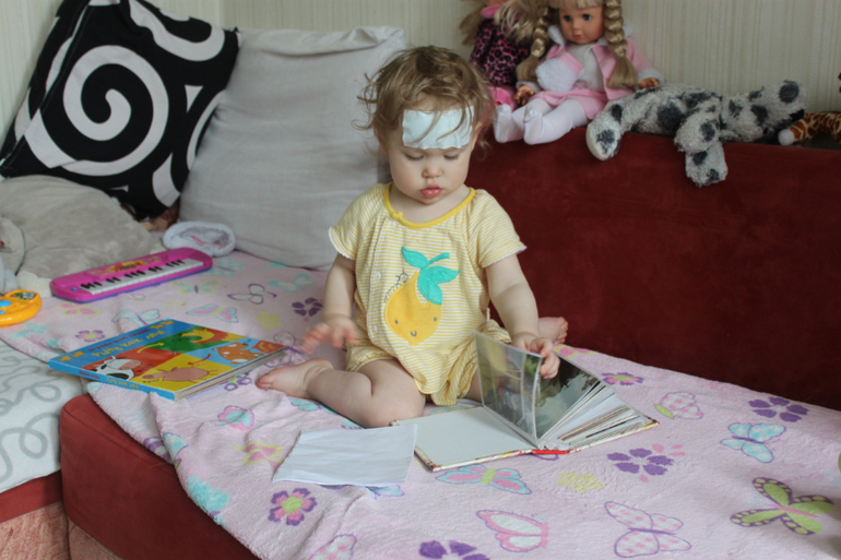 Главным огорчением месяца стала встреча Вариного лица с железным заборчиком. Ребенок расшиб подбородок и сломал передний зуб. В тот же день сломалась милая zee two -- железная перекладина треснула весьма фатально. К счастью, гарантия не истекла и все деньги за нее вернули. Так что теперь гуляем без коляски, что не так уж и плохо.