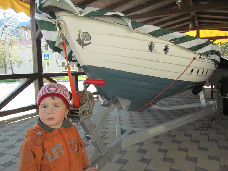 Через два дома от нас есть летнее кафе. Сейчас оно закрыто, и там поставили лодку. Так вот там очень любят мальчишка сидеть.Особенно хорошо там в ветреную погоду.