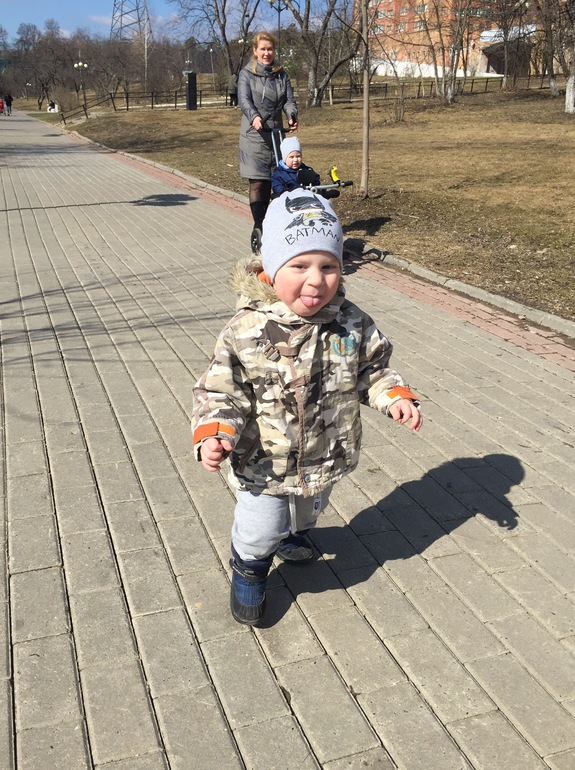 Гулять стало невозможно одной с двумя, домой не хотят, тащу.....))) поэтому ждем папу с работы и гуляем с ним)