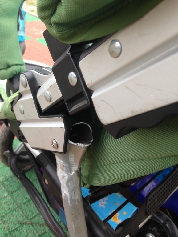 тоже думала, все прощай колясочка, но нет, сначала хотели сварить, но сказали, что не выйдет, обратились к токарю, он нам выточил такую же трубку со всеми прорезями, только теперь нет заводских клепок.