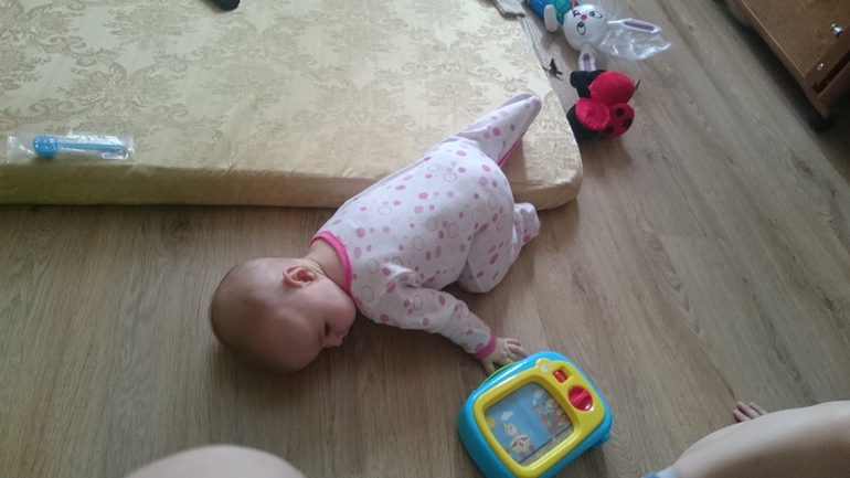 Из умелок почти ничего нового, разве что ползают по пластунски уже достаточно умело, с матраца, который постелен в зале, они благополучно сбегают))