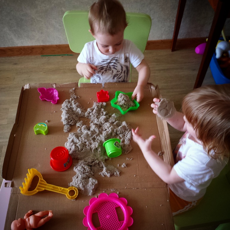 Рискнула дать кинетический песок, оказалось, что он очень их занял, но надо следить, конечно.