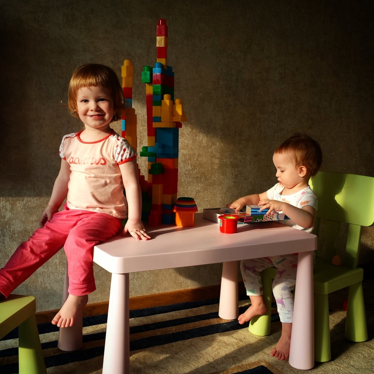 Режим у нас с одним дневным сном, прям как в ДС. Это радует. Горшок пока только когда сажу, все делаем. Как он мне надоел, когда же мы научимся снимать штаны и сами садиться, иногда по 20 минут могут сидеть. А так мы можем подойти сказать Кака...а кака уже в штанах. Типа, мать , че сидишь, мой попу))). Едим сами, уф...выдохнула. Хоть это умеем, бывают, ковыряются, но я кремень. В саду их кормить не будут.