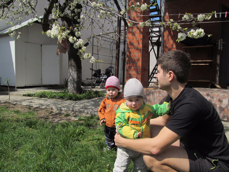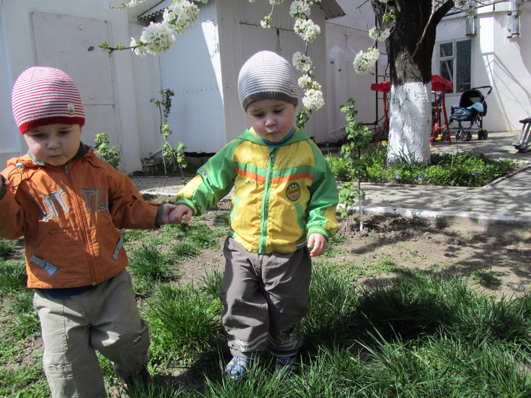 По фото можно заметить, что Тёмик играет более увлечённо, чем Рома. Рома в основном сыплет на брата песок