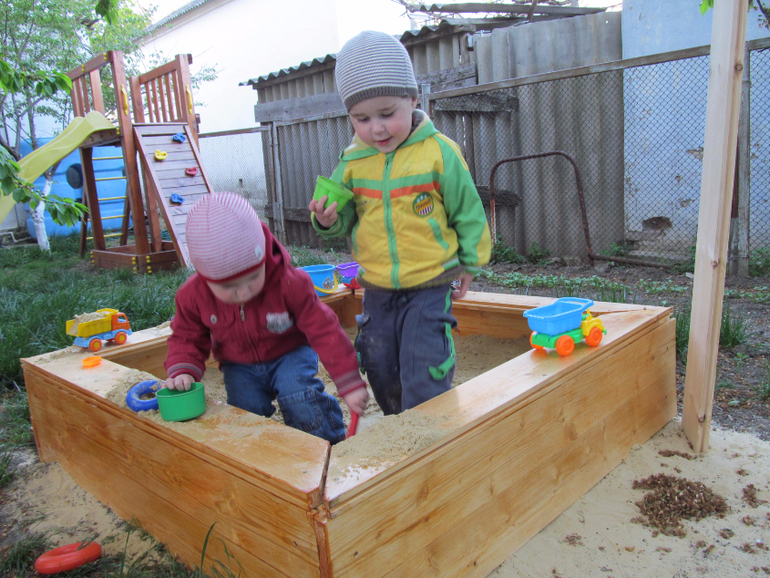 и детки, которые сыплют друг другу песочек на голову)) и мама, которая может спокойно приготовит овить на кухне обед, пока детки увлечены "делом"...