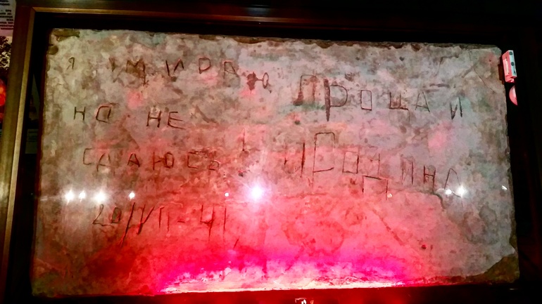 Местами ком в горле был и слезы на глазах. "Я умираю, но не сдаюсь! Прощай Родина. 41 г." - кусок стены укрепления с прощальными словами бойца.