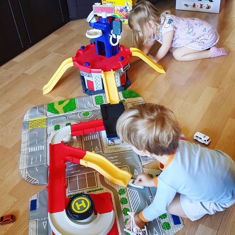 Освоили новые игрушки, которые получили на ДР, например продолжение к набору ELC - спасательная станция с рацией и лифтом