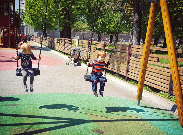 Еще в парке этом отличные детские площадки, тут я осознала, что можно просто сидеть на лавочке и наблюдать, да, спасать иногда приходится, но чаще можно ограничится наблюдением :)