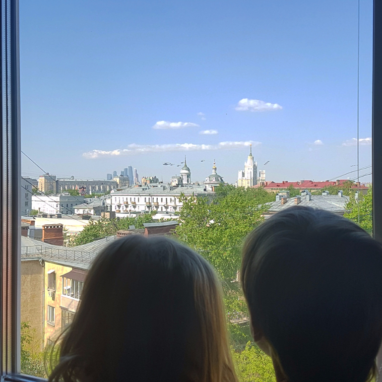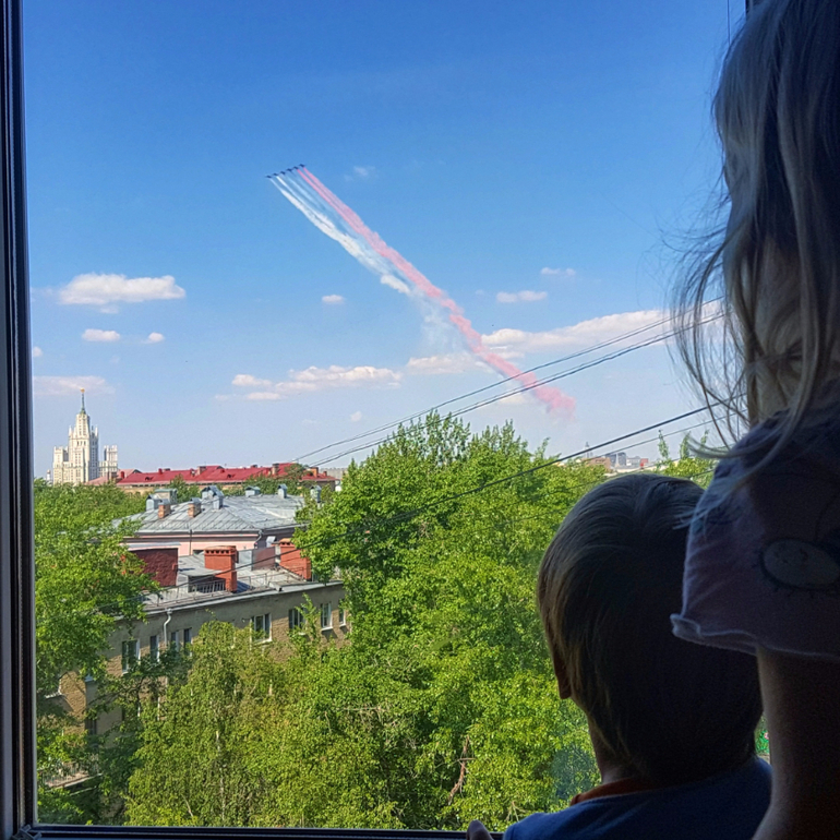 Посмотрели парад авиатехники из окна два раза, 7-го и 9-го