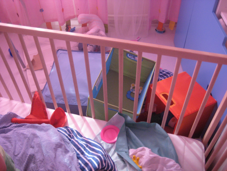 Путем раскачивания кроваток по ламинату доехали до шкафчиков и... прощай порядок, наведенный накануне. И зачем я только вчера потратила кучу времени на сортировку игрушек, конструкторов, пирамидок и прочих прелестей? Мыши перевернули практически все + сгрызли икеевскую картонную ширму для кукольного театра. Я когда зашла в комнату, подумала что какашки на полу валяются. Ан нет- это мышки жевали картон и выплевывали. Плохая мама. Не кормит. Спит как лошадь пожарная.Зато я выспалась.