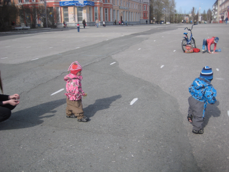 Прогулки с малышамиВот наконец то сегодня выгреблись погулять. Фото успела сделать. Сопли позади. Мы - впереди планеты всей. Мальчик как всегда убегает- сестра и мама догоняют. Наши "мыши" погрызли палочку, отнятую у собачки. Ну что поделаешь, мыши...