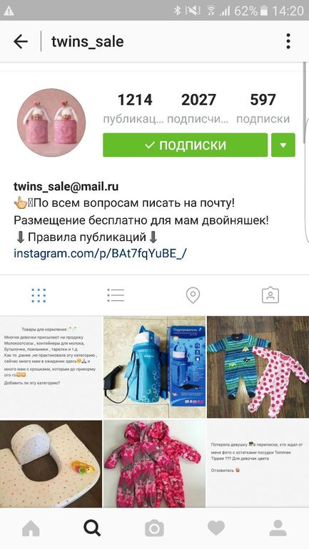 "хозяйка" странички тоже мама девочек двойняшек - Полина, она же модератор - все фотографии публикует сама (ей можно присылать на почту, в директ, ВК...) у нее ее есть требования к качеству и содержанию фото, все строго по делу, после продажи - комментируете свое фото, что продано и его удаляют.
