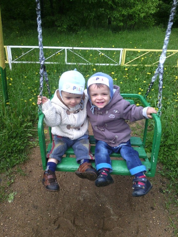 ГКП, скорее всего будет по 3 раза в неделю по 4 часа, говорят без присутствия родителей. Ну и желательно приучить к этому времени. Предлагали и сад на полный день с июня, но я отказалась, хоть мне и очень надо, но не могу, жалко их. Сказали, сейчас в Москве нет яслей, убрали, но сделали младшую группу с 2,10г семьям с 1-2 детьми и с 1,5г многодетным. По речи, пока нет, на-дай и все, нет пока интереса, но я и не занимаюсь с ними специально, некогда, сами научатся, жду эхо, когда начнут повторять окончания моих слов, тогда и поднажму. По прививкам. Мы отстаем от графика, АКДС только месяц назад начали, прошло легко, 1 день температура до 38. Так же сделали все гепатиты, полиомиелиты, и дополнительно я сделала им Хиберикс от ангин, короче не знаю получится ли в этом плане так же удачно как с дочкой, она здоровяк конечно ттт, но решила и им делать все то же что и ей, посмотрим. Очень надеюсь, что как и старшая сестра, они в 4 года перестанут вообще болеть чем бы то ни было. Ну а будут болеть, сад будем ограничивать тогда. Немного фото:
