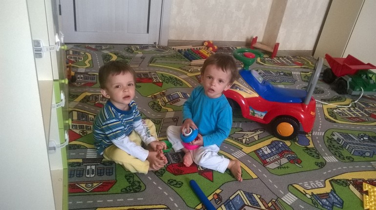 Двойняшки от 1 года до 3-хКак быстро растут! Иногда конечно кажется долго))) особенно в трудные минуты, когда болеют, когда зубы, когда я с ними болею, а сейчас все это позади, я оглядываюсь и понимаю, все, полтора года и мои мальчики уже другие, абсолютно не такие какими были полтора года назад, беспомощными хиленькими младенцами. Сейчас на лицах начал проступать отпечаток ума, ОДНОЗНАЧНО виден характер, который будет всю жизнь. Интересно получилось, 2 из 3 детей экстраверты (дочка и один из мальчиков Рома), с сильным, упертым характером, есть капризность, обидчивость, неусидчивость, короче в меня они( а один малыш Герман если не ошибаюсь меланхолик, а может флегматик, ну такая душка, вот был бы у меня один он, я б таких 10, нет 20 воспитала. Это не передать. Ему дашь игрушку, он будет час ковыряться очень спокойно, или возьмет машинку за веревочку и ходит катает тихонечко. Я таких усидчивых детей ни разу не встречала. Все игрушки использует по назначению, у него нет желания их разбросать, как у двух других. На руки возьмешь его, может пол-часа неподвижно просидеть, так ему нравится на ручках, прям котенок. Понимает слово нельзя и всегда выполняет. Мамина радость, короче, мой Герка). На горшок пока не начинали приучать, начнем в августе в 1,9г, записала вчера их в