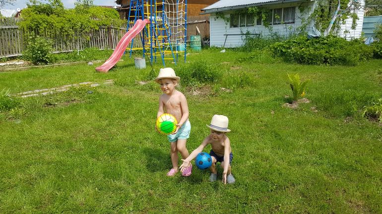 Дети уже сами себя способны занять на продолжительное время, кто на турник, кто на горку
