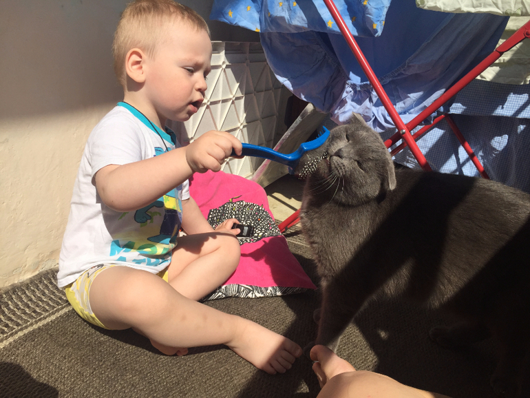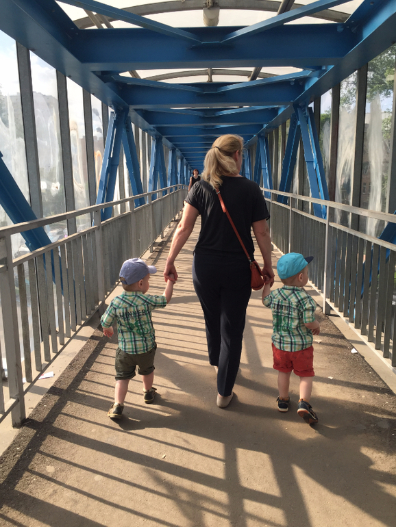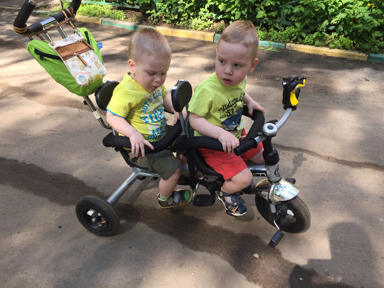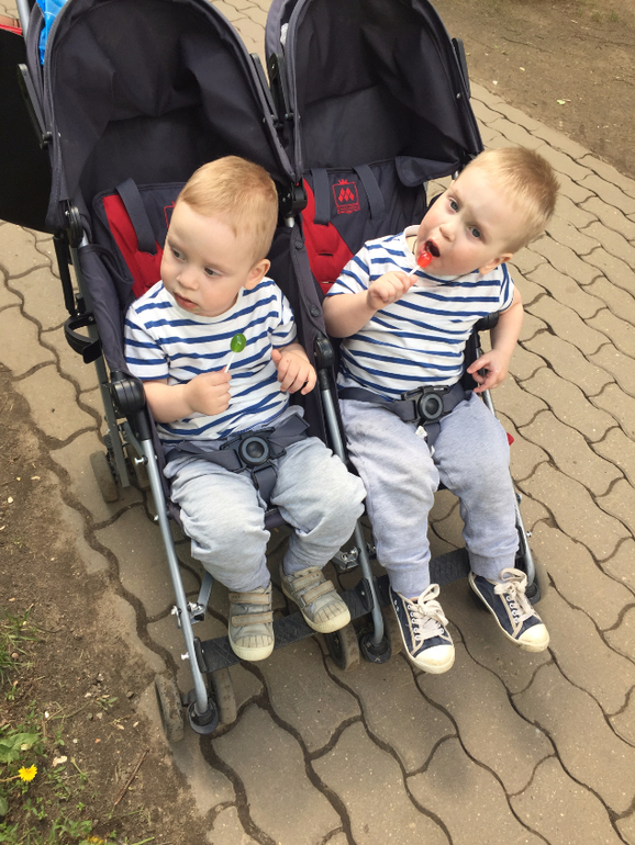 Одна) иногда с мамой) по выходным с мужем) чаще просто выходим во двор , они тут хорошо себя ведут, поэтому не так сложно)