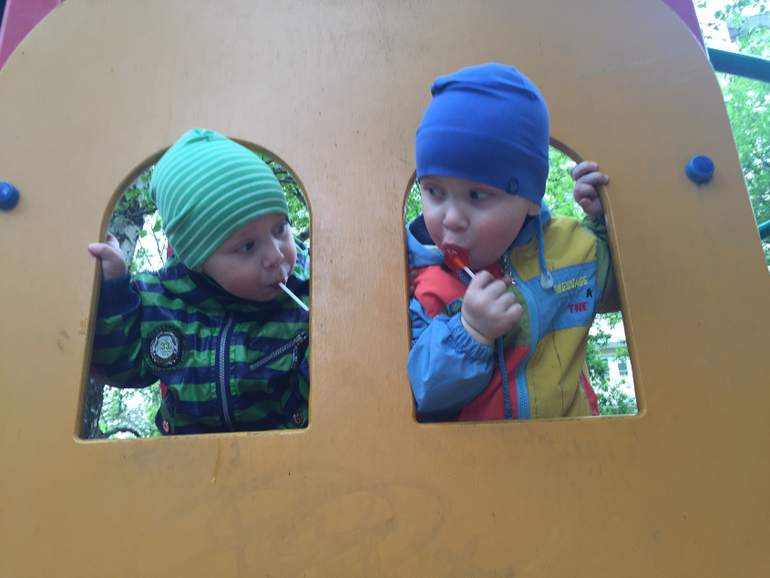 Суперские мальчишки !!! ))) Классно , что брат за брата переживает ) Хорошего начала детсадовской жизни !!
