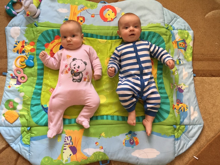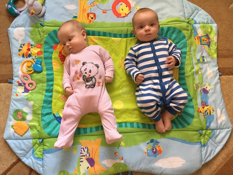 Двойняшки до 1 годаКак и обещала, эти посты буду делать каждый месяц!) очень уж потом интересно перечитывать)) Растут наши малыши 🙈 успехи под кат Платон научился переворачиваться и теперь это первое, что он делает проснувшись утром🙃, держит игрушки, тянет их в рот 🙊 улыбается, смеётся, строит глазки 😀 судя по всему, очень хочет ползти 😅 с удовольствием подолгу валяется на развивающем коврике) очень любит внимание и спать у маминой груди)) вес 6800 г, 65 см. Агата моя отрада ) умеет сама себя убаюкивать и успокаивать 👍 сама с собой играет, сама засыпает 😴 очень любит смотреть на мобиль, интересуется игрушками, захватывает их ненадолго. Улыбается, смеётся, но как только включается камера, то сразу "pocker face" 😐😐😐 😅 переворачиваться пока даже не пытается и на развивающем коврике быстро засыпает 😴😴😄 не любит, когда её лишний раз беспокоят 😁 болтает по настроению, но всегда эмоционально)) покушать тоже оч любит 😂 вес 6200, 61 см. Оба малыша полностью на ГВ. А я вполне бодра и весела))) но бывают дни, когда кажется, что ещё вот-вот и свалюсь) вчера такой был, потому что пришлось кататься по делам с двумя детьми (с Платоном и старшей Вероникой). Сначала поехали с Платоном на массаж, потом повезли Веронику на приём к физиотерапевту, потом к стоматологу... И когда я тащила одной рукой автолюльку, а другой вела Веронику к машине, я поняла, что пипец устала)) потом дома всех накормила и поехали дальше с Вероникой на физиолечение, хорошо, что оно закончилось уже у нас)) но вообще трое детей - это ещё та работенка! 😄