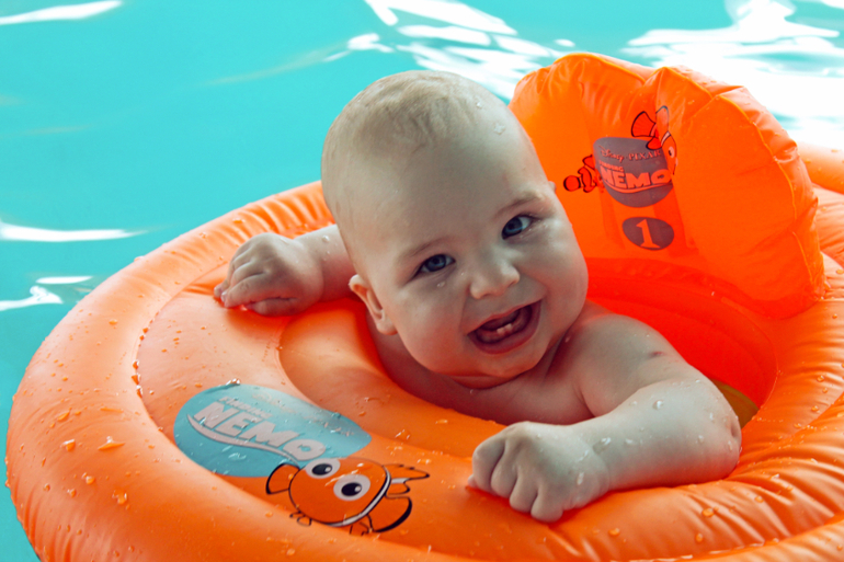 Круг такой у нас был только один, купили его перед самой поездкой. Честно говоря, побоялись брать сразу два, не были уверены насчет того, насколько он понравится детям. Но дети круг полюбили прям сразу: Ванюшка делал ножками плавательные движения и "бегал" по всему бассейну абсолютно самостоятельно, а Илюша расслаблялся и дрейфовал как маленькая креветочка)