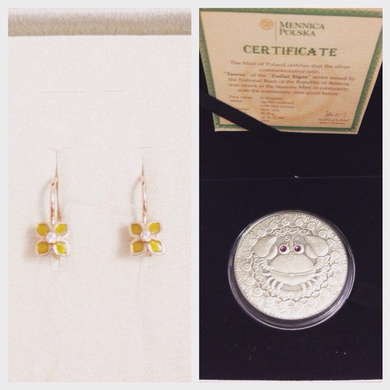 Настёне золотые серьги с эмалью, Санечке памятная серебряная монета со знаком зодиака. Остальные подарки от друзей и родственников будем получать в основное празднование)