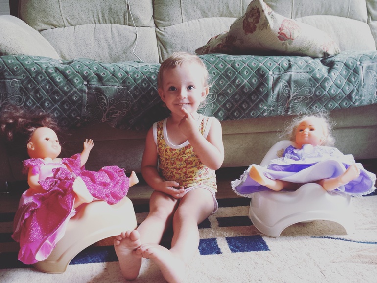 Хвасталки - первый зуб, первый шаг, первое слово, крещение....Горшочная тема, мамы меня поймут, а мамы двоин и того! Ну что, я могу сказать. Горшок мы освоили всего за неделю! До этого были просто высаживания и то , то ходили, то нет, но ходили дома в подгузах, плюс еще было стыло, боялась за девчонок. Застелили всю мЭбель, жалко диванчик. Убрали подгузники вообще, оставили пока на ночь, ибо, спать мне еще, ой как хоца))) и гулять. Итог ,первые два дня мы ходили в обсиканых труселях и на меня смотрели 2 пары обескураженных глаз, типа это че, а?, Итог, через 4 дня мы поняли, что надо туда садиться и делать дела и большие и маленькие. На 7 день мы просто говорим Кака или подносим горшок, теперь надо отточить снимать труселя и тогда будет идеально. Ура!!! Я думала будет хуже. Сегодня рекорд, вообще нет обсиканых трусов!