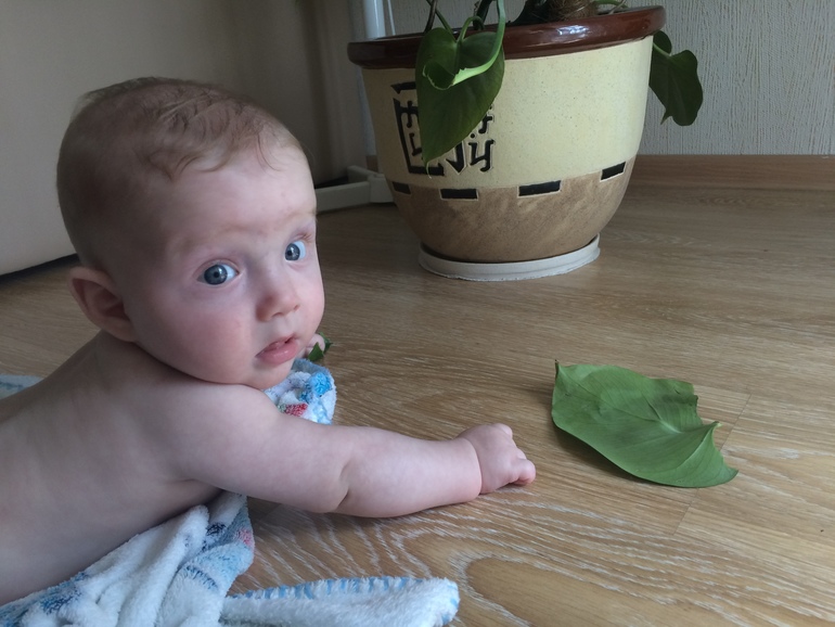 Они умеют вовсю смеяться, обращают внимание на музыку, переворачиваются и обращают друг на друга внимание. Иван на днях начал ползать, но не на четвереньках, а как то на руках подтягивается, Витя попу отклячивает так смешно)) Первым пострадал цветок, я не ожидала такой прыти от Вани и спокойно чистила зубы
