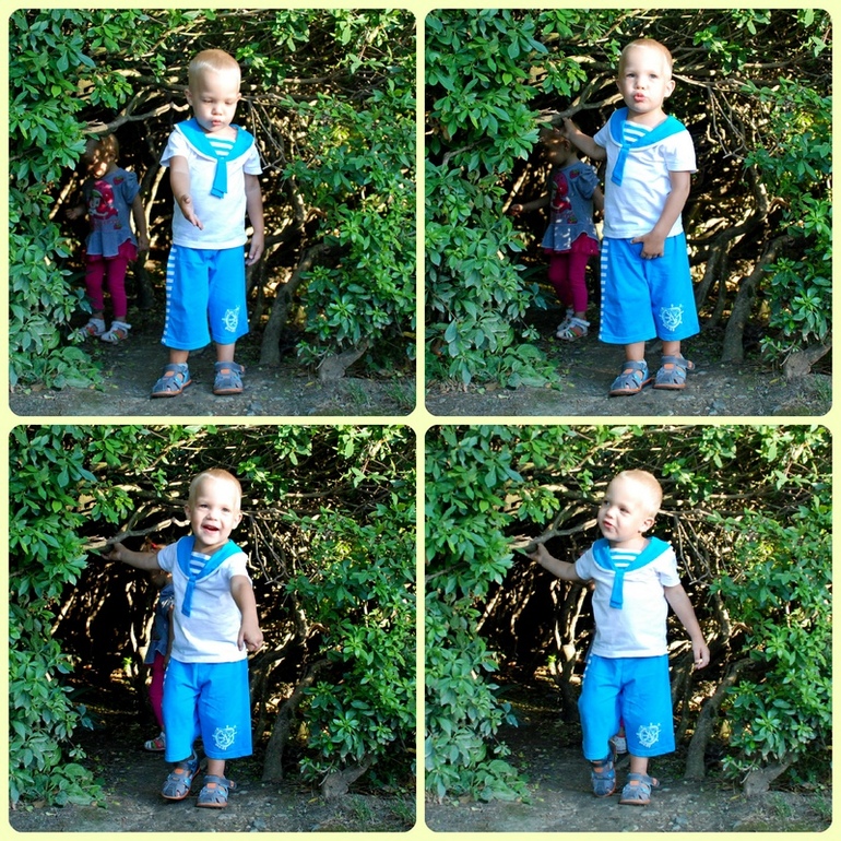 Когда гуляем, Димка всем встречным машет рукой "привет". Соня машет не всегда, по настроению. Прохожих это умиляет, многие машут в ответ.