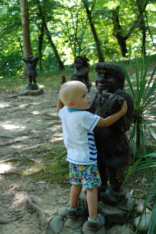 Вообще радует, что дети потихоньку начали общаться друг с другом, помогать друг другу: Дима берет Соню за руку, если ей страшно (правда, в основном только по моей просьбе - но это дело наживное), приносят друг другу вещи (чистые трусики, платочек, панамки, игрушки). Но играть вдвоем - именно друг с другом - пока получается плохо. С Диминой стороны это в основном пихания-бадания и усаживание всем своим весом на Соню. Она пищит и верещит, но сдачи не дает и не уходит. Просто сидит на месте и орет. Пытаемся это исправить.