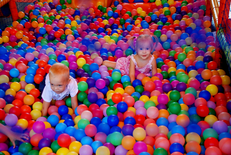 Впервые запустила детей в детский лабиринт. До этого побаивалась, потому что там обычно много активных быстрых детей, которые старше и больше моих. А тут народу было вроде немного и дети очень запросились. К слову, проиграли они в этом лабиринте полтора часа, без перерывов на попить и пописать - силой выносила их оттуда в туалет и запускала обратно. Дима сразу вел себя уверенно. А Соня сильно сторонится всех других детей. Соберется по лесенке вверх забираться, если кто-то подойдет - тут же разворачивается и уходит. Так долго она топталась в мячиках, пока я сама не залезла и не провела ее за руку на второй этаж. Потом стала смелее себя вести. На батуте никак не могла попрыгать: только заберется на него, тут же приходит другой ребенок старше, начинает прыгать с ней - и она просто улетает. Осмеливалась прыгать только с Димой за руку.