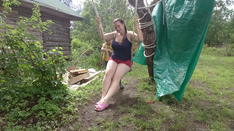 У деток висел канат, я чуток покаталась ..... спустя пару недель дерево развалилось совсем :(