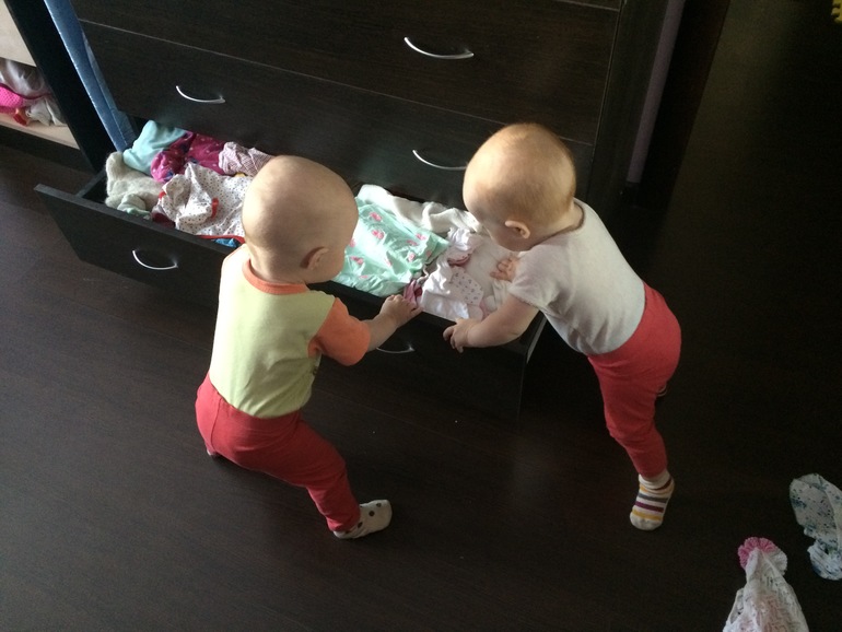 Вообще очень интересно стало за ними наблюдать, друг за дружкой ползают с визгами и писками, прячутся, делят игрушки, жалуются друг на друга😍