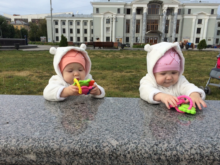 Прогулки это вообще отдельная тема. Обеим надо ходить, в коляске сидеть не хотят((( жду не дождусь, когда хоть одна сама пойдёт. Было тепло, ходили на площадку, песок там весь сожрали, камни все облизали🙊.