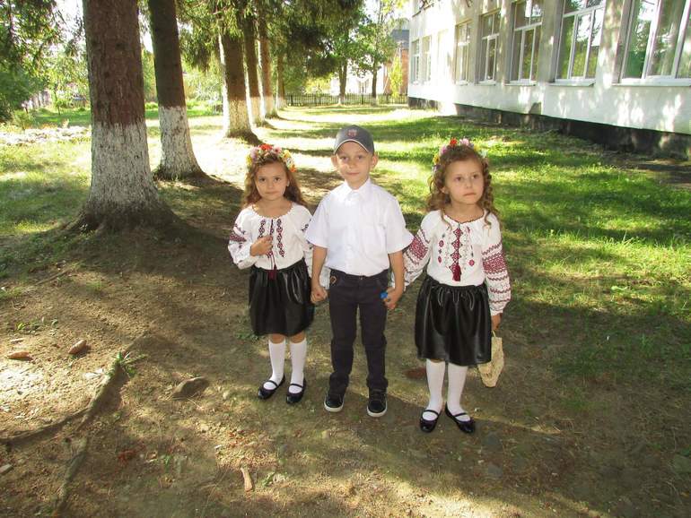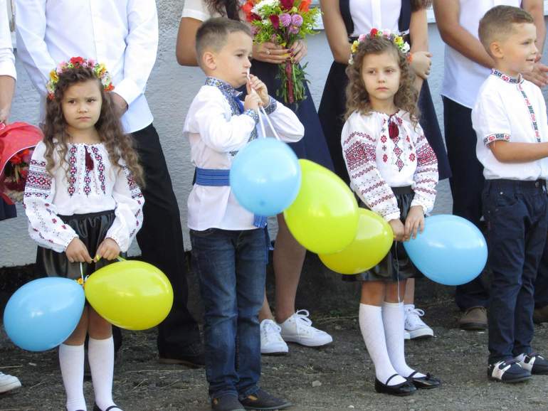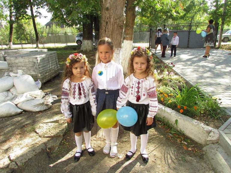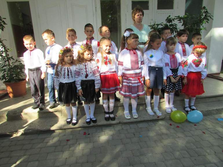 Дети на линейки были не в белых блузках и.т.д., а были одеты так:
