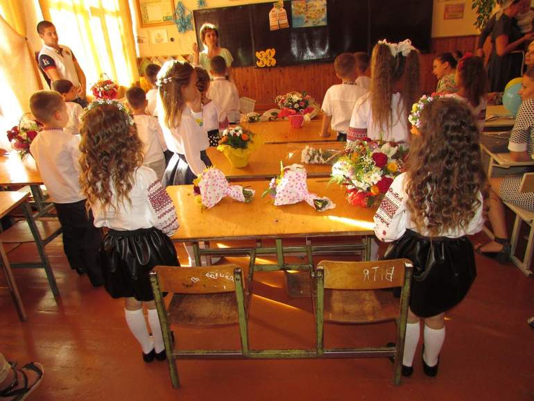 Ну вот провожают старшеклассники в класс)