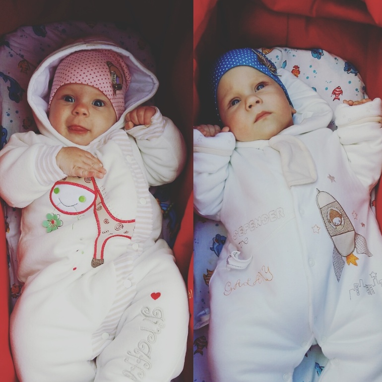 Детки суперрр!!! У нас тоже мальчик и девочка: Артем и Ариана. У вас очень красивое имя у девочки ( ну и у мальчика само собой разумеется). Нам пока 4 месяца. Девочка тоже шустрее:все раньше начинает делать,но пока мы только переворачиваемся. Оба перевернулись в 3 месяца. Нас пока еще животы беспокоят и зубы,видимо,у Арианы, и я уже как-то измучилась,а то ли еще будет... В общем сил и терпения вам и нам и здоровья деткам.
