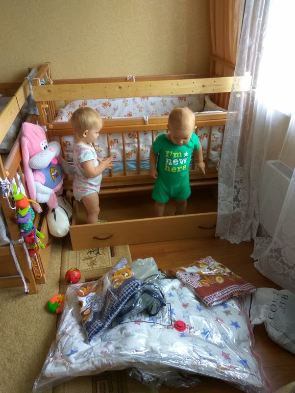 +1 Классные малышики! Оля, молодец, что отдохнули! И взяла себе на заметку доп. ограждение на детских кроватках))) Смотрю, они капитально тебе помогают прибираться. А то когда бы еще все шкафчики перебрала?