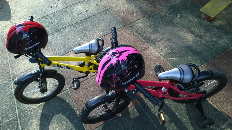 Велосипеды мы купили Capella, выбирали прилично по времени. Детям ещё и трёх не было, когда они на них сели. Катаются на четырёх колёсах, весь сезон так на них прокатались. Велики больше 10 кг точно с задними весят, так я их и таскала на улицу. У кого нет грузового лифта не советую - они неподъёмные и задние колёса делают их непроходимыми и непролезаемыми в двери.