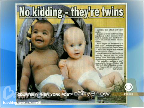 Интересные статьи о двойняшкахДве сестры Марсия и Милли Биггс, поразили в свое время весь медицинский мир. Когда они родились в июне 2006 года, их невозможно было отличить. Но вскоре разница стала очень заметной и присматриваться больше не было нужды. Темнокожая Милли и голубоглазая блондинка Марсия… Марсия унаследовал белый цвет лица ее матери и золотистый цвет волос, а Милли вышла в папу Майкла, ямайского происхождения, взяв его жесткие темные кудри и коричневую кожу.