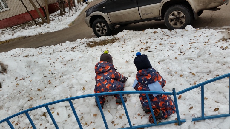 Когда выпал свежий снежок - дети с радостью бежали гулять; потом всё подтаяло - скакали по лужам; снова замерзло, выпал снег - раскапывали лёд под пушистым снегом. Осадков нет, изменений нет. Последняя радость - дворники расколупали жёсткие снежные корки и навалили за забором - теперь мы ими бросаемся, смотрим на осколки.