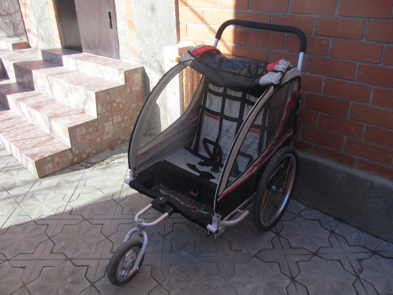 Если честно, это заловки моей, если нужно уточню. А у них папа деятельный активист ещё тот, они участие во всяких походах и велопробегах принимают..с тремя то детьми)) Он же предназначен к велосипеду прицепляться как тележка. А наша бабушка использует его как коляску)