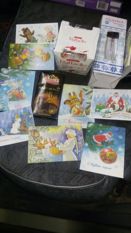 Бабушка наша получила свои любимые "рафаэллки" и наборы для творчества тоже для нее. А как мы все это узнали? Во второй посылке лежал набор открыток! И все подписанные! Для каждого отдельно и для всех нас! А какие открытки!!! Все "из детства"... Какие же они красивые и дарящие тепло... Просто чудесные!