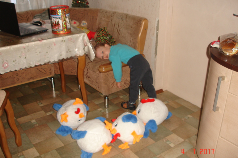 дедушка наш сегодня привёз подарки (немного припоздали)с мой работы(Надым,север и всё такое) зато цыпы какие))),мелкий только проснулся,а тут такое мягкое чудо))),