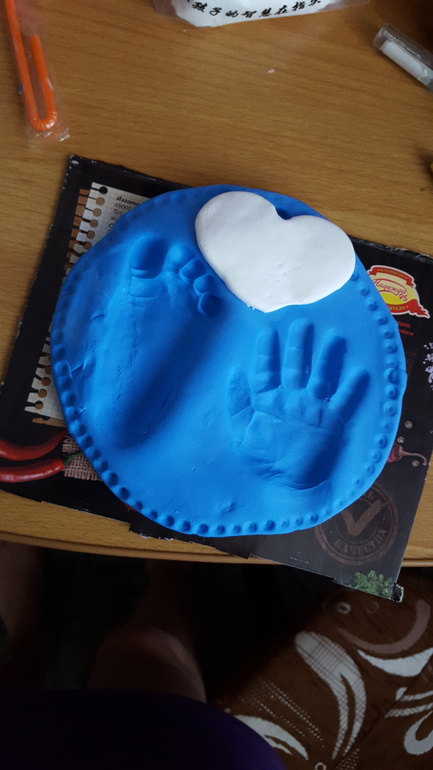 у Сашеньки ножка получилась со второй попытки а у Василисы с третьей..ручки как то сразу удались))) видите какая у моего мальчика большая ножка уже?😄 на белых сердечках потом подпишу кто и сколько))) это полимерная глина и меня уверили в магазине что сохнет сама)) жалею только что не сделала этого 3 месяца назад при рождении...выросли все таки малыши)))