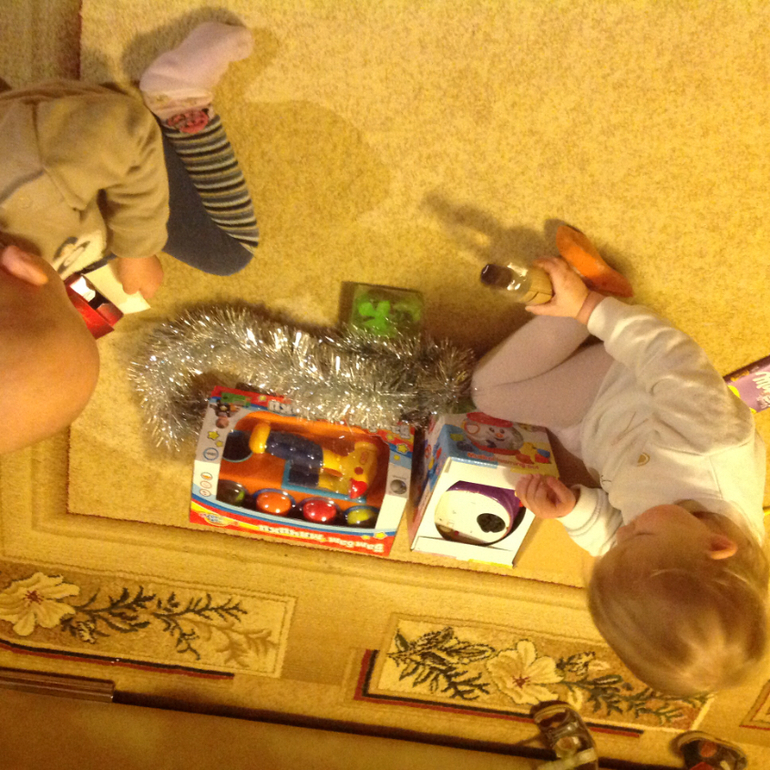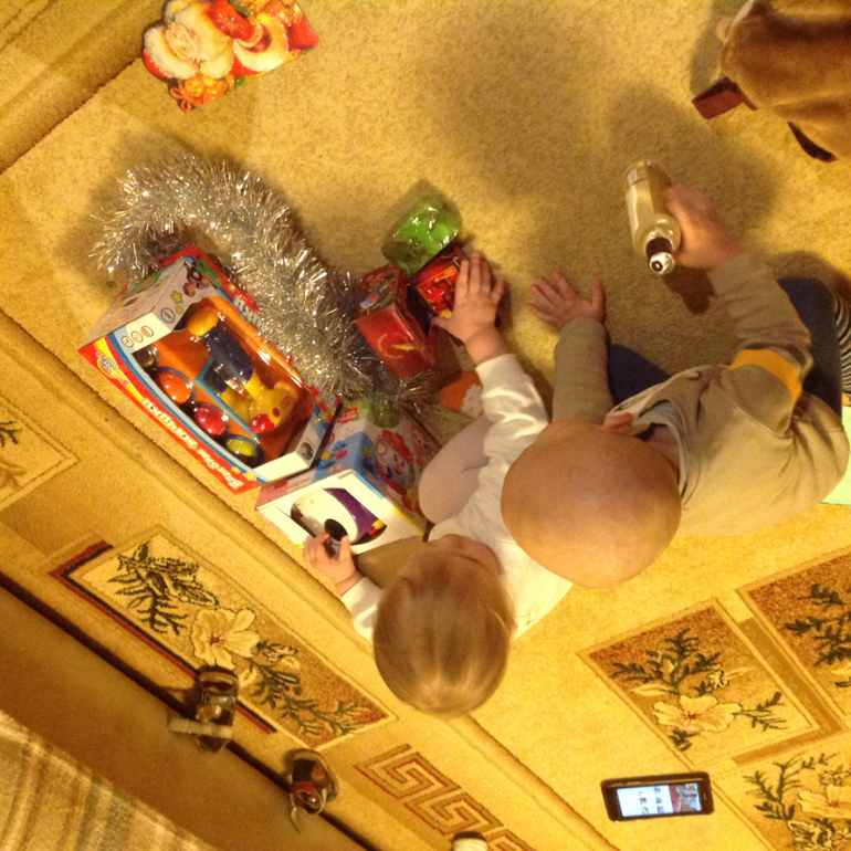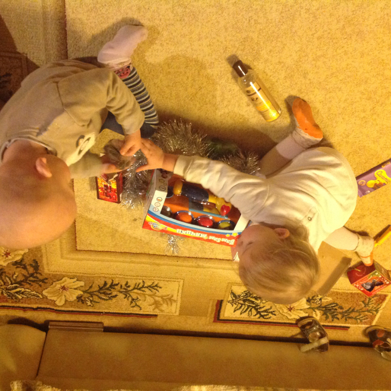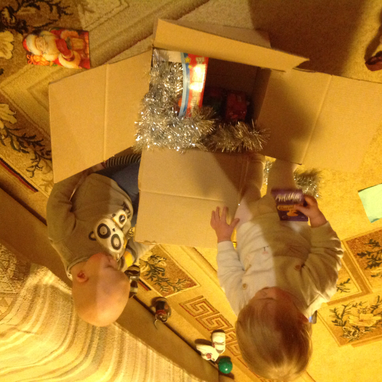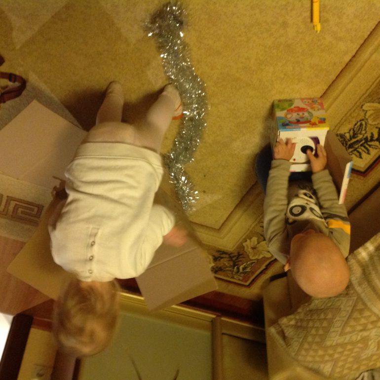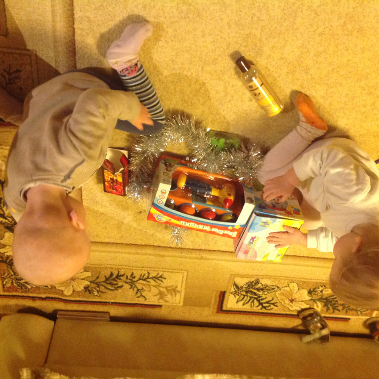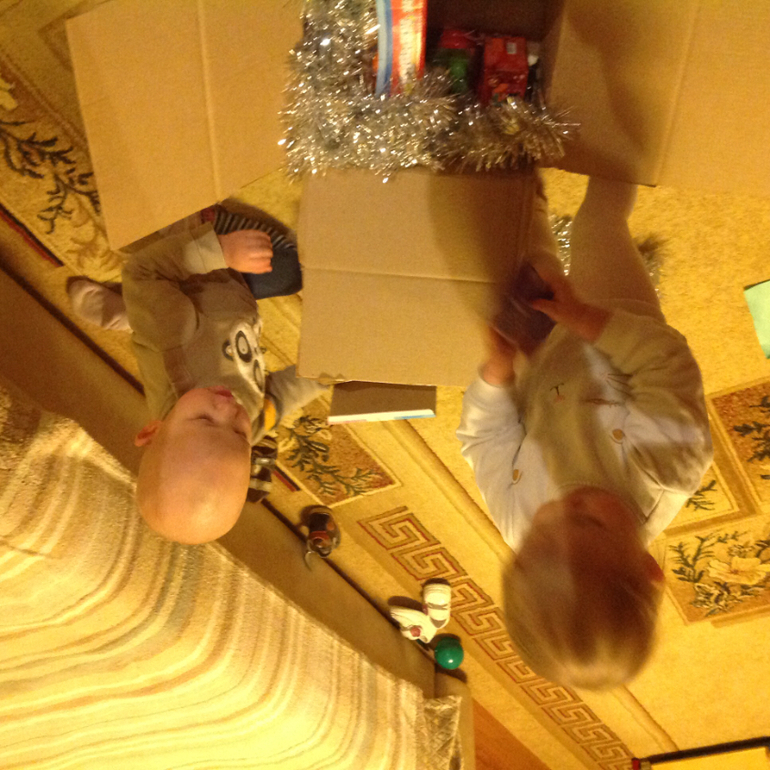 ПраздникиВчера мы получили наш новогодний подарок, который был собран от всего сердца. Игрушки малышам, маме и разные вкусности. Пришли мы с почты домой, достала коробку из мешка, открыла и дала малышам. Они ж с большим удовольствием стали все доставать, рассматривать и играть.